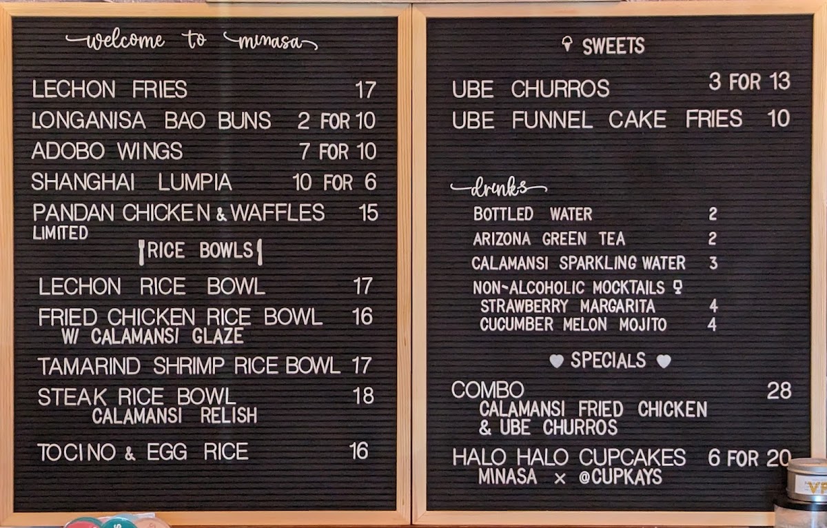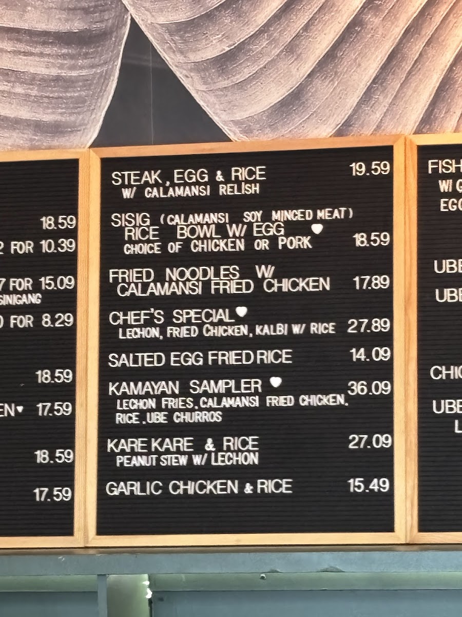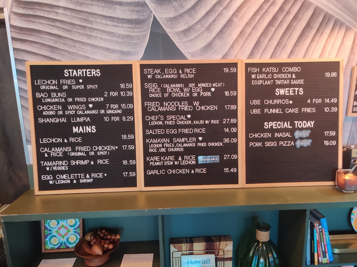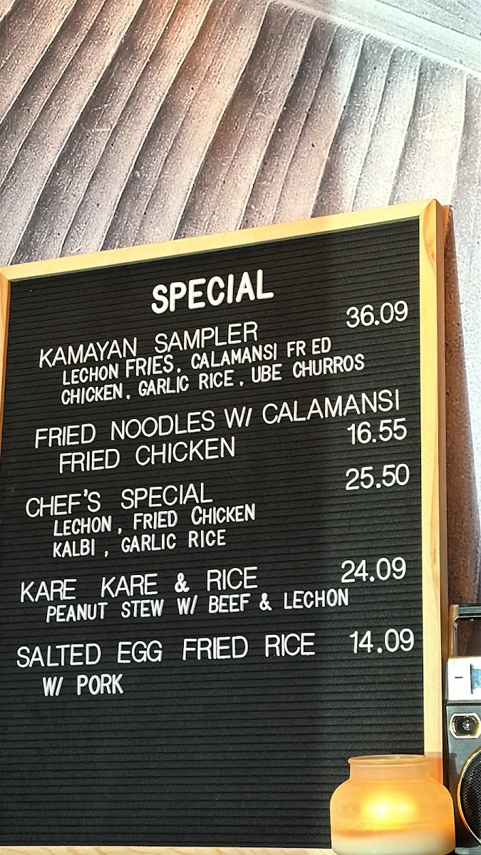 Try all of our best sellers! Lechon fries, calamansi fried chicken with rice, and ube churros.
